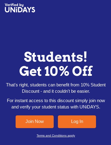 For instant access to this discount simply join now and verify your student status with UNiDAYS.