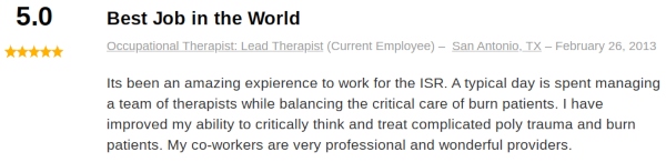 The job reviews for an Army Occupational Therapy Specialist (MOS 68L) are very positive.