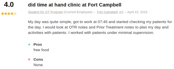 - https://www.indeed.com/cmp/U.S.-Army/reviews?fjobtitle=Occupational+Therapist