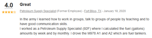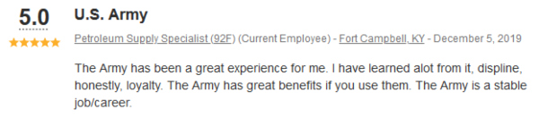 - https://www.indeed.com/cmp/U.S.-Army/reviews?fjobtitle=Petroleum+Supply+Specialist