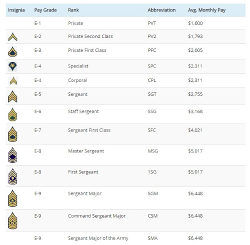 The U.S. Army has a structured system for how it ranks personnel as well as how they are treated in terms of monthly base pay. It does not matter what type of role you fulfill in the U.S. Army, only the rank.