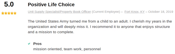 The reviews for an Army Unit Supply Specialist (MOS 92Y) are largely positive on job sites like GlassDoor.com and Indeed.com.