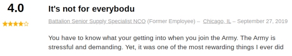 One job poster mentioned that the Army is demanding and stressful, yet one of the most rewarding things you can do: