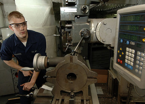 An MR machines replacement parts for engines and propulsion systems for Navy ships, submarines, and aircraft.