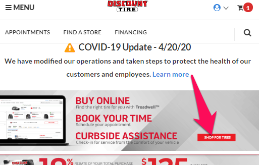 Step 1: Click Here to visit the official Discount Tire website where the discount is announced.
