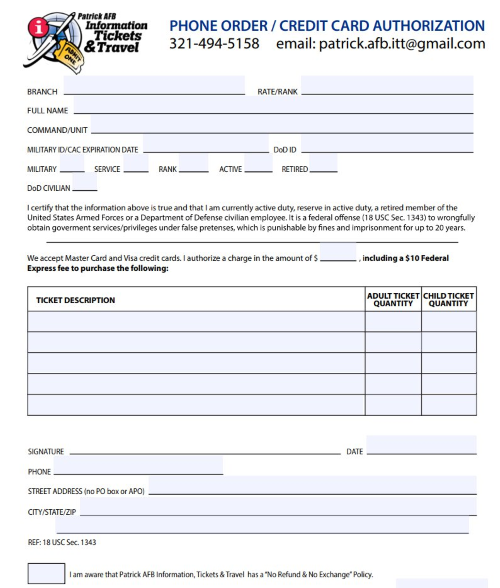 Buy Tickets Over The Phone Through Patrick Air Force Base