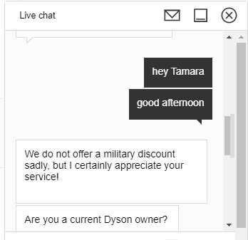 OMK reached out to Dyson directly regarding their military discount.
