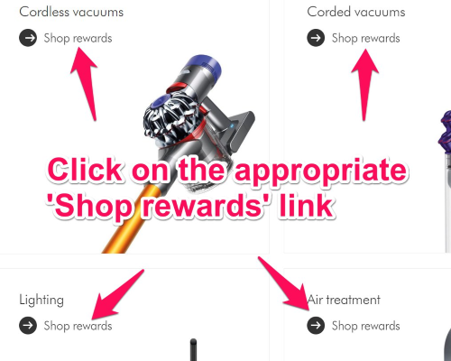 Step 2: Click on the ‘Shop rewards’ button for the category of product you’re looking for.
