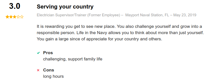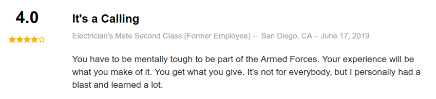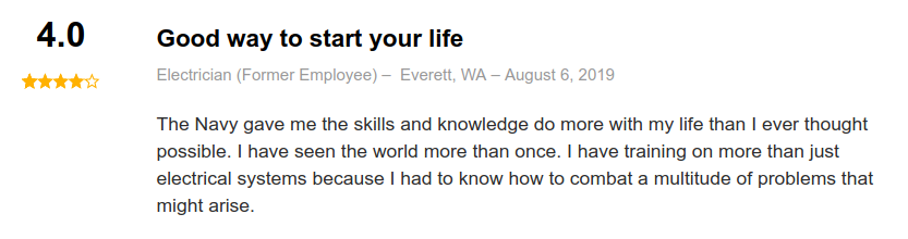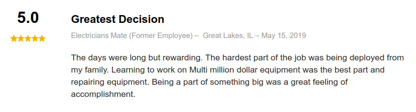 Reviews from current and former Electricians Mates on indeed.com are overwhelmingly positive: