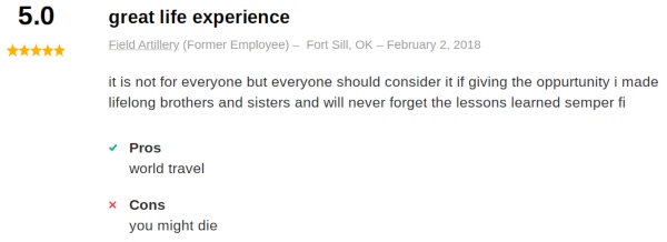 - https://www.indeed.com/cmp/U.S.-Marine-Corps/reviews?fjobtitle=Field+Artillery+Firefinder+Radar+Operator&fcountry=ALL