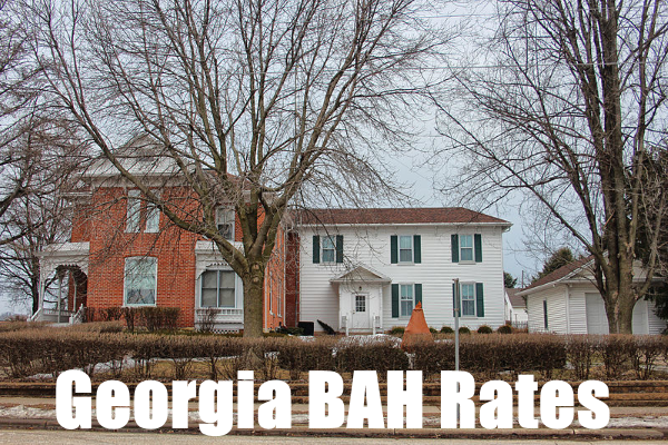 Georgia BAH rates for the area for enlisted, warrant officer, and officer includes:
