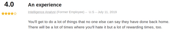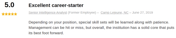It is not easy to find job reviews specific to MOS 0241 Imagery Analysis Specialist.