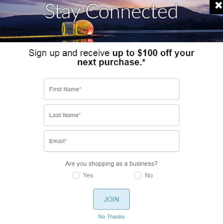 All you need to do is fill out your first / last name and email, and will almost immediately receive a $100 off coupon that you can apply to your next purchase.