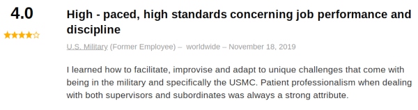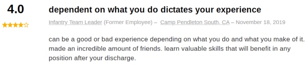 However, job sites like Indeed.com have a long list of reviews related to serving the Marine Corps.