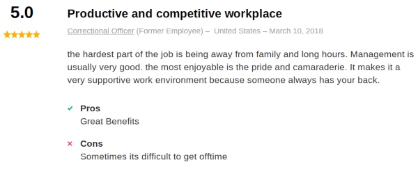 The vast majority of reviewers had positive experiences working as Correctional Specialists.
