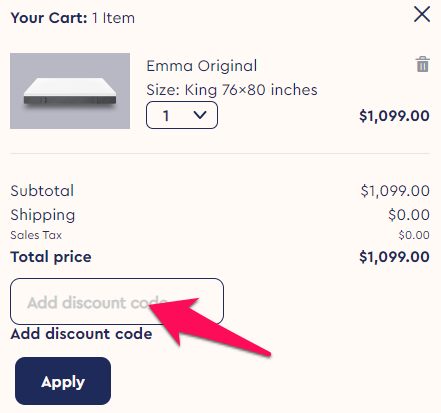 Step 3: Click Here to go to the Emma Mattress website and choose your products.