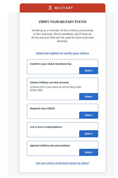 Step 3: A form will pop up asking you how you’d like to verify your status. It looks like this: