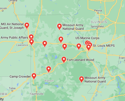 There are a total of nine active military bases or installations in Missouri. Because the state borders the Mississippi River, it is able to support Navy and Coast Guard stations, meaning that all five branches of the US Military have at least one base in the state.