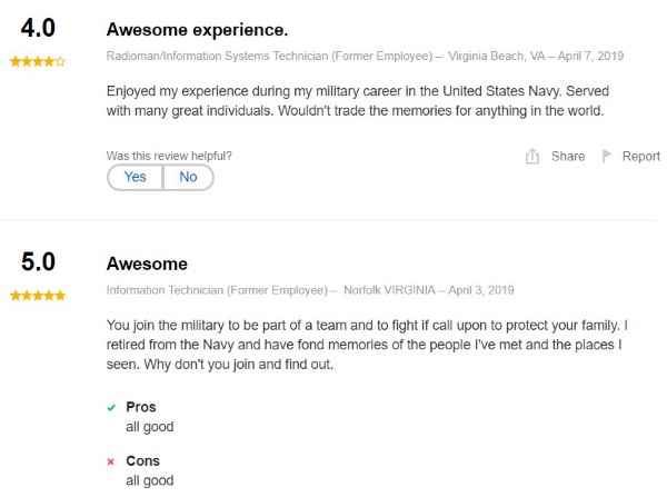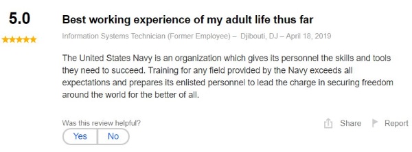 Here are a few reviews we happened across on indeed.com for a Navy Information Systems Technician: