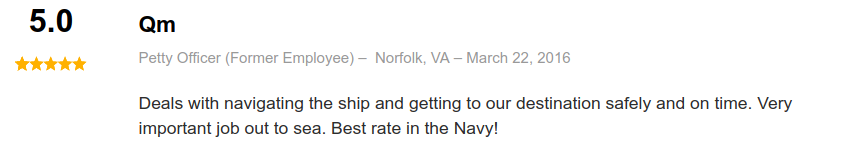 The Navy QM rating should not be confused with the job of the Quartermaster in the Army.
