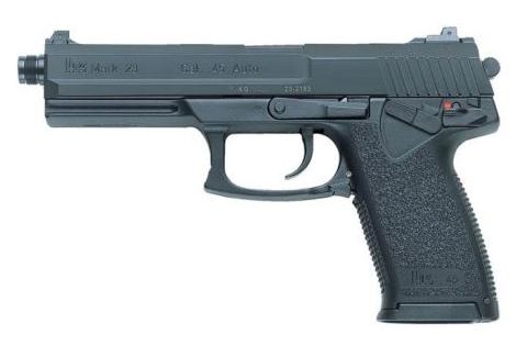 The HK45C sidearm provides front and rear sights (like the Mark 25) along with an extended threaded barrel that supports gun suppressors.