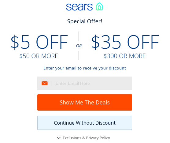 If you’re looking for more ways to save on your next Sears online order, simply sign up for the Sears email list and/or text alerts.