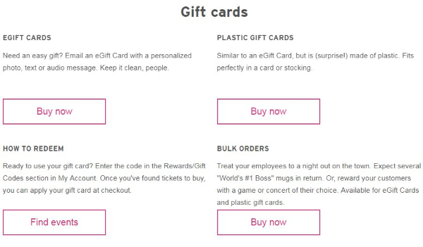 StubHub offers e-gift cards as well as plastic physical gift cards for people to purchase.