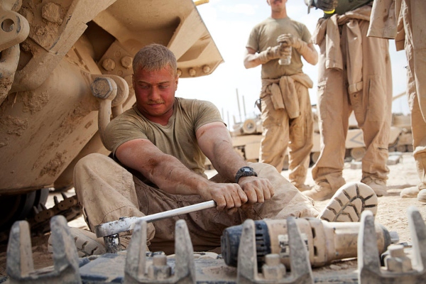 The job requires the servicing, inspecting, maintenance, and repairs of every type of military vehicle.
