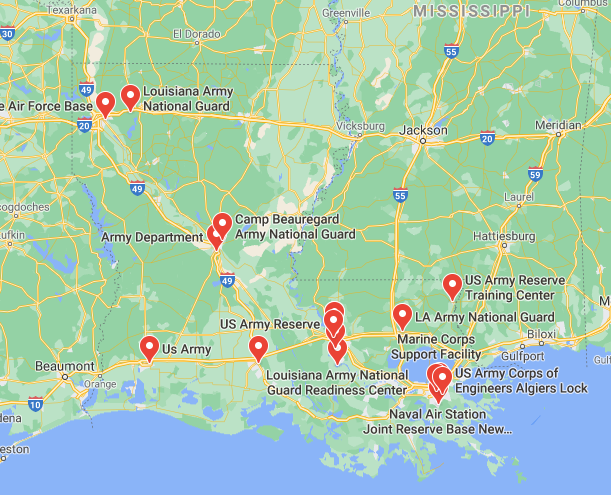 Louisiana is home to a fairly large number of military bases. Their bases represent all five branches of the US military, as well as units in Active Duty, Reserve, and National Guard roles.