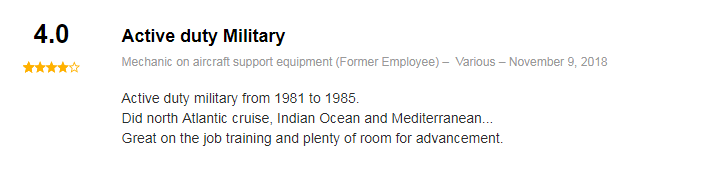 These are the reviews posted by two Ex-Navy Aviation Support Equipment Technicians on the website Indeed.com: